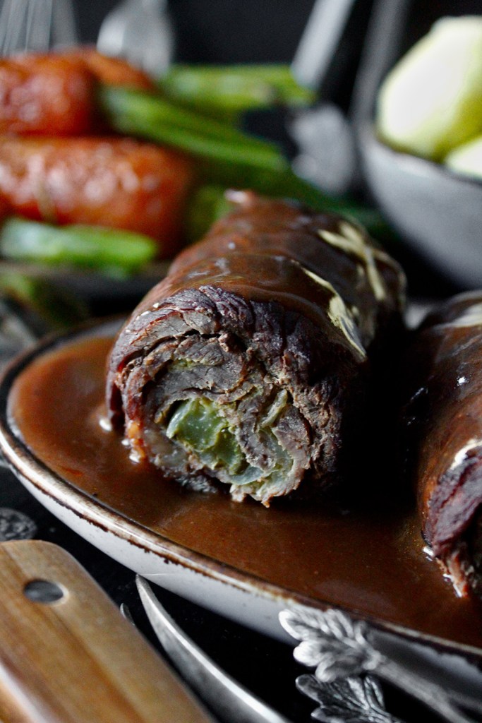 Zarte Rouladen in einer tiefdunklen Sauce. So edel kann Hausmannskost sein! Wir machen gerne die klassische Version nach Omas Rezept, also Rouladen aus der Oberschale eine Füllung aus Senf, geräuchertem Schinken, Zwiebeln und Gewürzgurken. Dann kommt es nur noch darauf an, die Rouladen auf kleiner Flamme langsam zu schmoren. Ich empfehle sie mindestens zwei Stunden in meiner dunklen Sauce mit Rotwein köcheln zu lassen. Um Zeit zu sparen, kannst du diese auch super vorkochen und einkochen oder einfrieren.