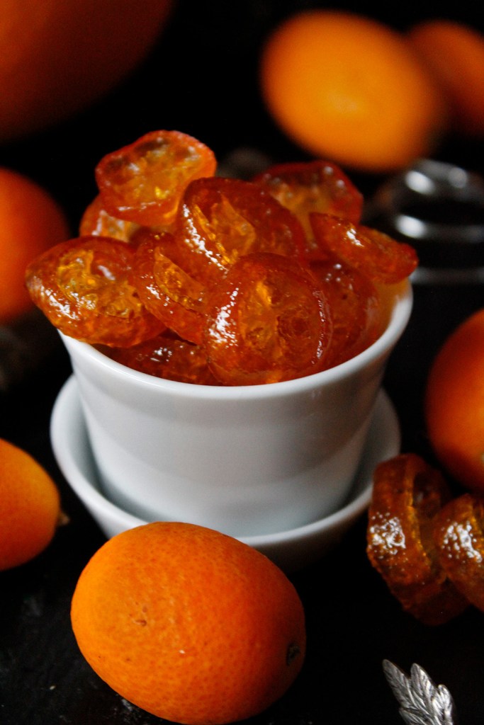 Klein. Zuckersüß. Fruchtig-Herb. Kandierte Kumquats sind unglaublich aromatisch und der absolute Hingucker. In Zuckerwasser mariniert und getrocknet entfalten die Zwergorangen so ihren vollen Geschmack. Ob du sie einfach naschen oder zur Dekoration deiner Desserts verwenden möchtest ist ganz dir überlassen. Ich leg mir im Winter am liebsten einen größeren Vorrat an. Denn kandierte Kumquats sind sehr lange haltbar und einfach zu lagern. Auf diese Weise kann ich dann sicher sein, dass ich ein paar der kleinen Köstlichkeiten für mein Herbstmenü verwenden kann.