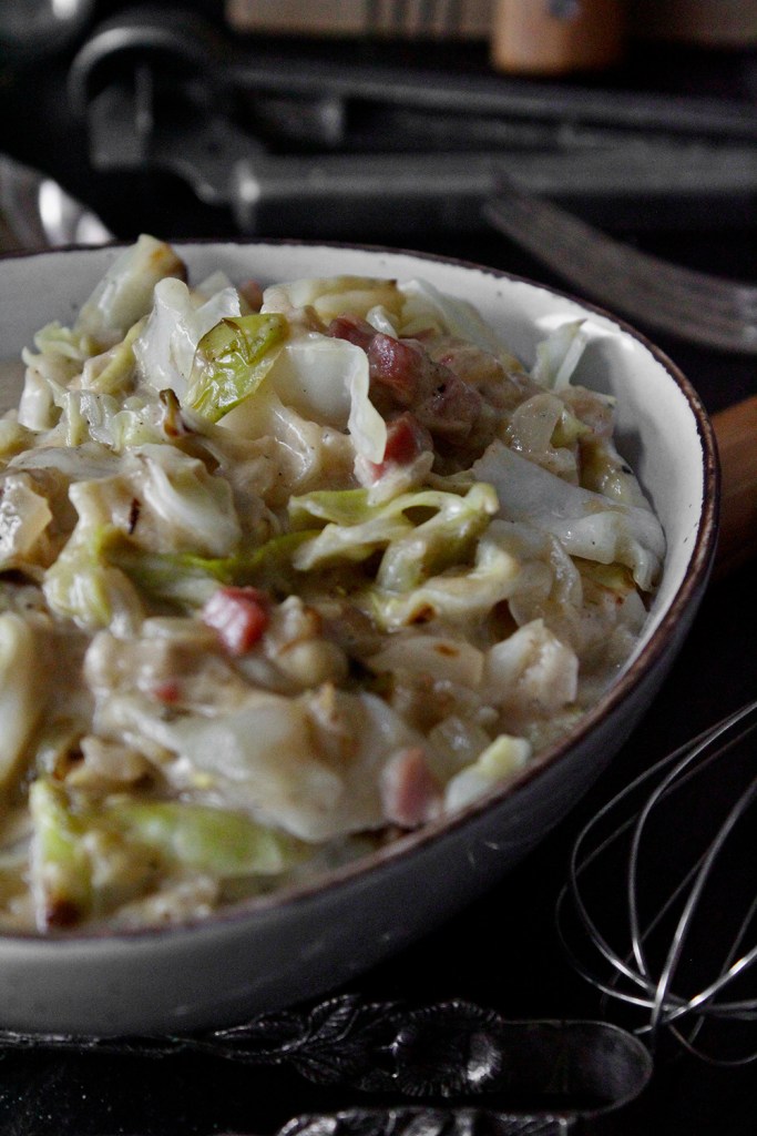 Aromatischer Spitzkohl, cremige Sauce, knuspriger Speck. Dieses Rezept beweist dir, wie man aus Weißkohl im Handumdrehen ein ebenso feines wie deftiges Gericht zaubern kann. So erinnert es ebenso an Omas Hausmannskost als auch ein feines französisches Rezept. Wir servieren es gern, wenn im Winter schnell was auf den Tisch muss, reichen dazu meist Kabeljau und Hasselback Potatoes.