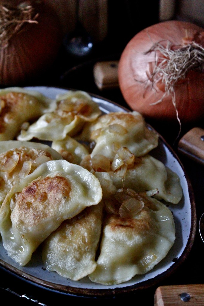 Deftig und doch zart. Außen knusprig, innen cremig weich. Piroggen mit Kartoffel-Füllung sind ein wahrer Genuss. In eine authentisch polnische Pierogi-Füllung gehören dazu aber unbedingt noch körniger Frischkäse bzw. Hüttenkäse und Zwiebeln. So liebte mein polnischer Freund sie als Kind und so liebt er sie noch heute. Obwohl Pierogi mit Kartoffelfüllung auch einfach gekocht gegessen werden können, empfehle ich unbedingt, sie anzubraten. Denn erst so entfalten sie ihren vollen Geschmack.