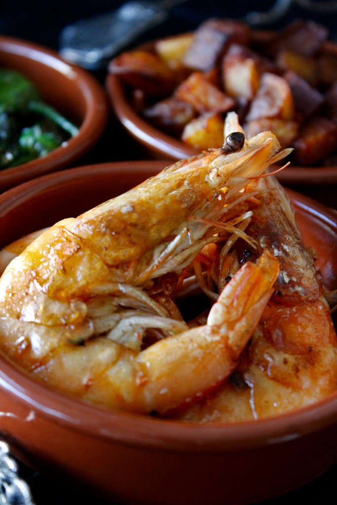 Frisch vom Markt, in die Pfanne: In Knoblauch-Öl geschwenkte Garnelen gehören zu den klassischen Tapas-Varianten. Hier steht der pure Geschmack der Meeresfrüchte im Fokus. Keine Gewürze, keine Sauce. Hier glänzt die Garnelen mit puren, intensivem Geschmack.
