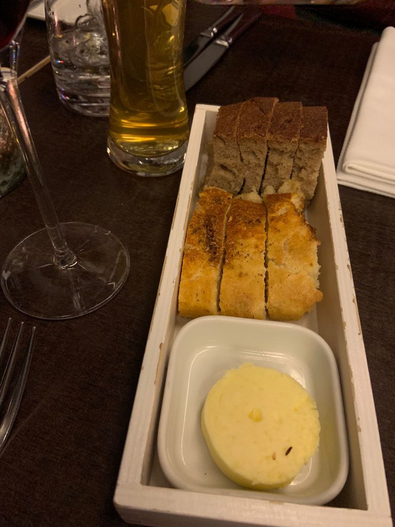 Es ist November, als wir das MaiBeck für unseren nächsten Restaurantbesuch auswählen. Die ersten Erfahrungen hier waren zwar nicht berauschend, aber wir hoffen, dass die Küche damals einfach einen schlechten Tag hatte. Also auf ein Neues! Auf der Webseite finden wir leider nur ein Menü von August. Na gut, denken wir uns. Dann lassen wir uns eben überraschen, freuen uns, als wir am Abend unseres Besuches dann noch eine mit Tesafilm an die Tür geklebte Karte sehen. Die Gänge lesen sich toll, die Vorfreude steigt. Wir werden freundlich begrüßt, dürfen uns einen Tisch aussuchen. Als wir wenig später neben dem großen Fenster Platz nehmen, wird uns die Speisekarte gereicht. Doch hier steht wieder ein anderes Menü. Welches gilt denn nun? Servicemitarbeiter Sascha wirkt auf Nachfrage etwas verlegen, kann uns mit seinem Charme aber schnell für sich gewinnen. Auf diese Weise hätten die Gäste doch erst recht einen Grund, mal vorbeizuschauen. Um zu sehen, was es letztendlich gibt, lächelt Sascha. Tatsächlich würde das Menü circa alle zwei Wochen geändert. Ein Rhythmus, auf den man sich mit den Lieferanten einigen konnte, damit diese überhaupt hinterherkommen. Eigentlich würde man sogar eine höhere Frequenz anstreben. Uns gefällt der Ansatz, die Möglichkeit zur Abwechslung. Klingt aber auch nach einer echten Herausforderung, erwidern wir. Lassen uns von Sascha noch mitteilen, dass das Tagesgericht Pasta mit Ochsenschwanz ist. Wir bestellen dann doch lieber das Vier-Gänge-Menü. Ich lasse mir einen alkoholfreien Aperitif empfehlen, der zu den besten zählt, die ich seit langem hatte.